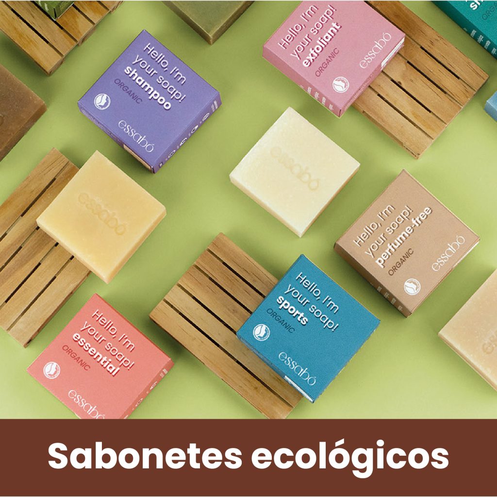 Essabó é a marca de sabonetes cosméticos artesanais e champôs sólidos 100% naturais. Uma linha de produtos básicos para a higiene diária de toda a família que cuidam da pele, mesmo das mais sensíveis, e do cabelo de forma natural, respeitosa e eficaz. Uma gama de cosméticos certificados, práticos, saudáveis e sustentáveis, com múltiplas funcionalidades e sem plásticos. Pequenos, leves, sólidos e fáceis de transportar.